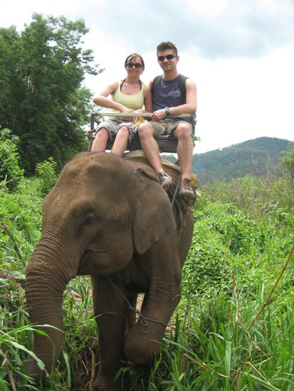 Abends haben wir dann Andis Geburtstag in der Ba ba bo bo Bar gefeiert. Dienstag waren wir nur shoppen und haben abends mal eine Thai Massage getestet, war sehr lustig und entspannend. Mittwoch war unser interessantester Tag. Wir haben eine Dschungeltour gebucht. Erst ging es in ein Elefantencamp, wo wir mit einem Elefanten durch den Dschungel geritten sind.