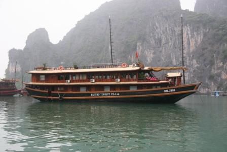 Im Hafen erwarten uns eine Unmenge von Dschunken, Tourismus pur, immerhin besuchen jaehrlich 2 Mio Touristen das zweifach ausgezeichnete Weltkulturerbe. Allerdings kommenn wir recht schnell auf unser Boot, sehr gross und komfortabel.