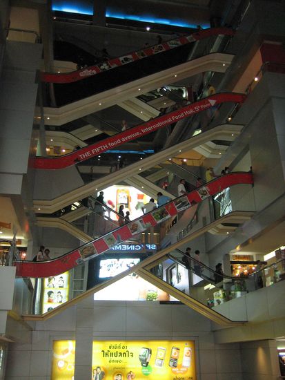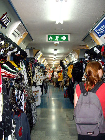 Im Anschluss starteten wir unsere Shoppingtour, beginnend beim Weekendmarket. Der Markt war riesig, dardurch aber auch unuebersichtlich. Naechste Station: das MBK-Bangkoks groesstes Einkaufszentrum. Sieben Stockwerke mit kilometerlangen Gaengen, in denen man sich leicht verirren kann. Wir haben das typische Klischee der Frau erfuellt... wir waren doch tatsaechlich 8 Stunden extrem shoppen! Mann, mann, mann-sieben mal verglichen, aber keinmal gekauft. Ein Waaaahnsinn! Als wir um ein Uhr nachts im Bett lagen, bemerkten wir die Strapazen unseres 19(!) stuendigen Tages in Flip Flops.
