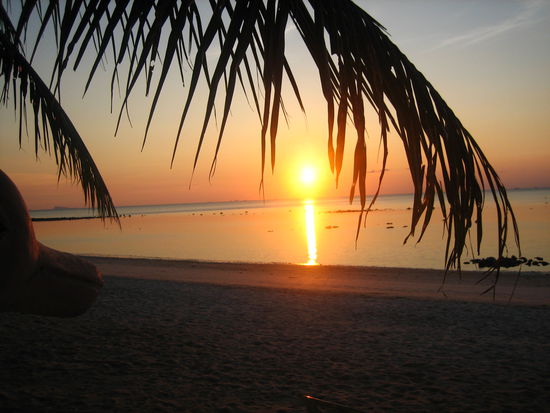 Vom Fest zurueck gekommen, sprangen wir ersteinmal in Meer und genossen den gigantischen Sonnenuntergang