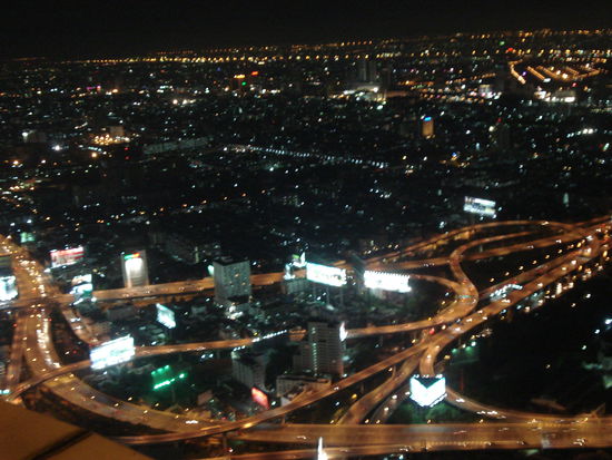 Dort genossen wir bei leckeren Cocktails eine traumhafte Aussicht ueber das Nachtleben von Bangkok.