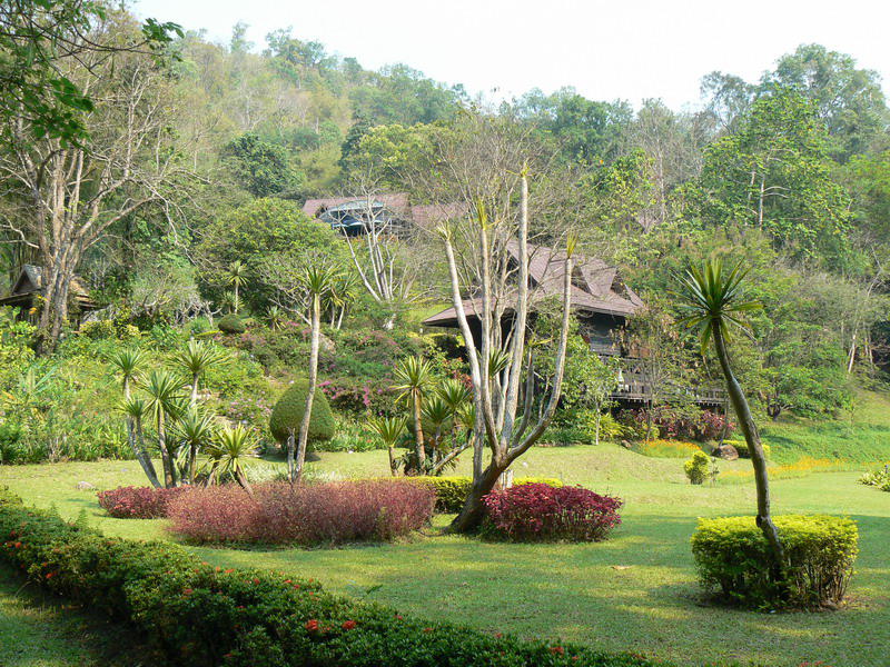 Auf dem Weg nach Chiang Mai verbrachten wir zwei Tage im Mae sa Thal . Eine Region in der die Bangkoker Oberschicht gerne ihren Urlaub verbringt. Es wird hier alles geboten was dem Thai gefällt. Als wir im Thal eintrafen und nach einer geeigneten (bezahlbaren) Unterkunft suchten, fing es heftigst an zu regnen.