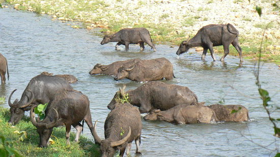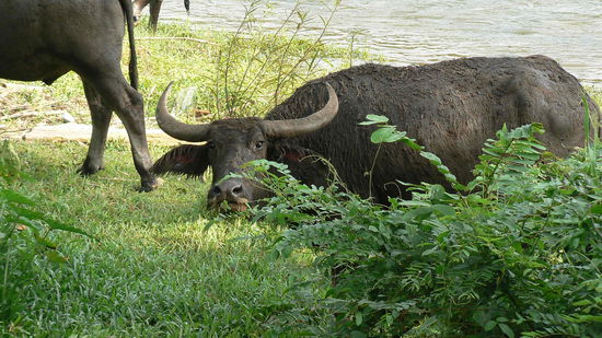 Ca. 1 Sekunde nach dem folgenden Bild wurden wir durch eindeutige Gesten von diesem sympatischen Wasserbüffel aufgefordert zu gehen...