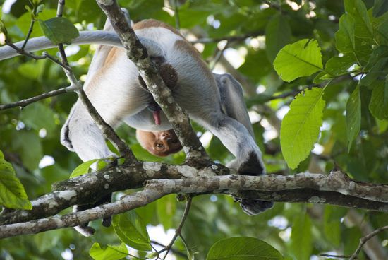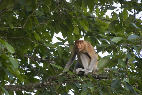 Schaut euch mal die Nase an, diese Affenart heißt nicht umsonst Nasenaffe, gibt es nur auf Borneo. Hat riesigen Spaß gemacht die zu beobachten.