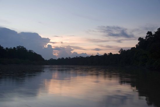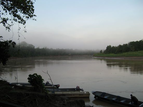 Mit Uncle Tan ging es drei Tage, zwei Nächte an den Kinabatangan River. Unsere Gruppe bestand aus weiteren vier deutschen Urlaubern und einem französischen. Nach ca. zwei Stunden Fahrt mit dem Kleinbus erreichten wir schon den Fluss. Wir schnappten unser Gepäck und fuhren mit dem Schnellboot noch eine Stunde bis zum Camp. Während der Hinfahrt zum Camp machten wir schon unsere ersten Schnappschüsse. Es sei noch erwähnt, dass die Tour mit Uncle Tan diverse geführte Safaris beinhaltet, während der Morgen- und Abenddämmerungen und einmal während der Dunkelheit alle per Boot, zudem zwei kleine Wanderungen durch den Dschungel (einmal tagsüber, einmal nachts). Und wir müssen sagen, es war einfach lohnenswert diese Tour zu machen, es machte sehr viel Spaß und wir hatten viele Tiere gesehen. Das Camp war sehr "basic", wir schliefen auf Matratzen in Bretterbuden die mit Gitter umgeben waren, damit die Affen nichts klauen können. Duschen gab es keine, egal, es gab eh nur braunes Wasser. In Gummistiefeln stapften wir durch den matschigen Dschungel. Aber seht selbst wie es war ...