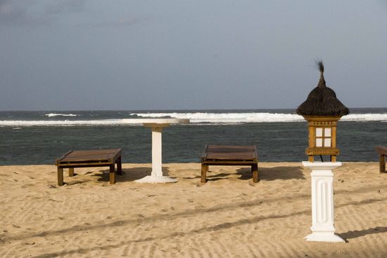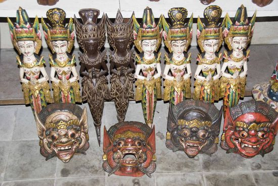 Die Kleinstadt Ubud gilt als künstlerisches Zentrum Balis. Hier und im Prinzip fast die ganze Strecke von 30 Kilometer nach Denpasar hinunter reihen sich Ateliers, Möbelgeschäfte usw. aneinander. Es gibt so unglaublich viele Geschäfte, die Kunstgegenstände aller Art verkaufen, und wir müssen sagen, wir hätten die ganze Insel leerkaufen können, denn die Sachen (Zimmerbrunnen, Steinskulpturen, Bilder und Möbel) haben uns schon sehr gut gefallen. Am liebsten hätten wir einen Seefrachtcontainer angeheuert und ihn vollgestopft (immerhin haben wir im Internet nach den Frachtkosten recherchiert, es verblieb aber dann bei der Planung). Die Schattenseite war allerdings, dass man sich oft nicht in Ruhe umschauen konnte, man wird hier von den Verkäufern regelrecht aufgefressen, genauso wie am Strand von Sanur oder in Kuta, dort sind es allerding billige Textilien, Uhren und Sonnenbrillen, mit denen man zugeschüttet wird. "T-Shirt? Massage? Tour durch Bali? Taxi?" so ging es wirklich alle 15 Meter und übertrifft unsere bisherigen Erfahrungen in Nordafrika um ein Vielfaches. Wir sind die letzten zwei Tage unseres Bali-Besuches auch deshalb nicht mehr an den Strand gegangen, weil uns diese Quengelei ziemlich auf den Keks gegangen ist.