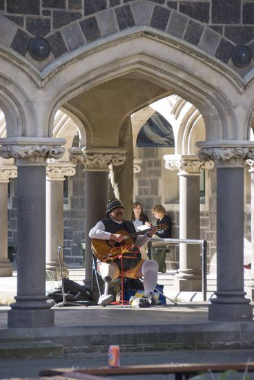 Aber nochmals zurück nach Christchurch. Sehenswert dort fanden wir das Arts Centre, die neugotischen Gebäude waren früher mal die Universität, nun haben sich ein Theater, Verkaufsläden mit Kunstsachen aller Art und Cafes dort eingenistet.