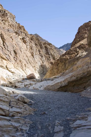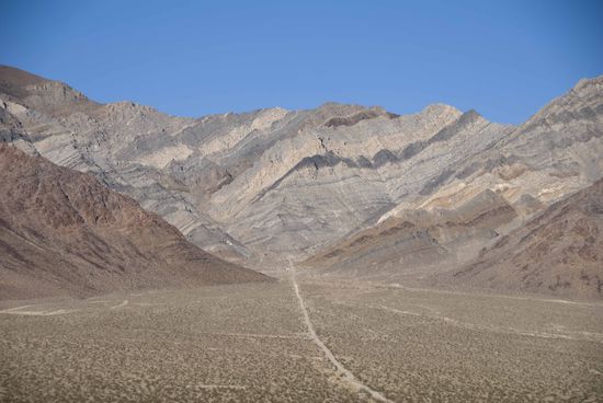 Wie auch immer, wir haben noch ein paar Ziele vor uns und wollen noch viele Bilder in unseren Köpfen und im Fotoapparat speichern. Nach Las Vegas kommt schon bald das Death Valley, es ist der trockenste Nationalpark in den USA und liegt in der Mojave-Wüste. Mittlerweile haben wir die Staatengrenze zu Kalifornien überschritten. Diese Gegend hier ist auch eine der trockensten und heißesten der Erde, denn die Regenwolken weinen sich an den fünf Bergrücken im Westen vom Death Valley aus, so bleibt kein Tropfen für die Wüste übrig.