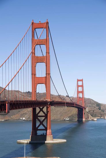 Golden Gate Bridge. An solch einem Pfeiler blieb James Bond in „Im Angesicht des Todes“ mit einem Zeppelin hängen.