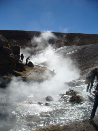 Zwischen 34 und 40 Grad warm ist das Wasser hier und wir konnten uns so richtig wieder erwärmen. "Nach einer Stunde löst sich die Haut von Touristen auf", warnte Christian. Nach einer Stunde waren wir auch alle wieder bereit zu neuen Taten. Nur das aussteigen aus dem warmen Wasser und das anziehen an der kalten Luft war etwas schwierig. Ausserdem hatte ich auch ein wenig Mühe mit dem Aufstieg zurück zum Auto, immerhin waren wir noch immer auf 4200 Metern.