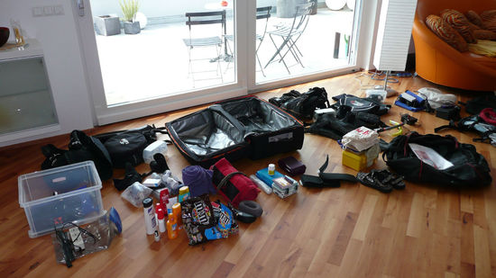 Wir sind schon gespannt ob das alles in die zwei Taschen reinpasst. Heute abend werden wir uns noch einen gediegenen Schlummertrunk gönnen. Morgen geht´s los, Zürich - Singapore in 12:05 Stunden.