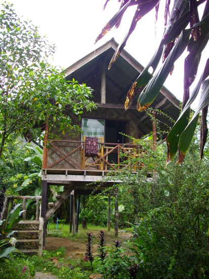Das Resort liegt wirklich mitten im Dschungel-koennte mich praktisch mit einer Liane aus meiner Huette ins Restaurant schwingen! Das Resort teile ich mir mit ganz vielen netten und weniger netten Mitbewohners, als da waeren Affen, Schlangen, Katzen, Rehen(sehen hier ein wenig anders aus) und natuerlich ganz viel Viechzeugs! Wenn man leise ist, kann man mit ganz viel Phantasie auch den einen oder anderen Tiger bruellen hoeren