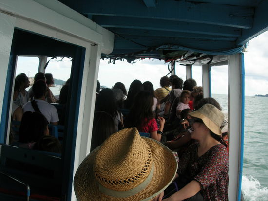 Wir mussten etwas auf unsere Abfahrt warten da der Faehrmann zuerst noch eine Fernsehsendung zu ende sehen wollte. Da nun schon mehr als die zur Abfahrt noetigen 20 Passagiere da waren wurde es erst auf dem Steg und dann auch auf dem Boot etwas eng.