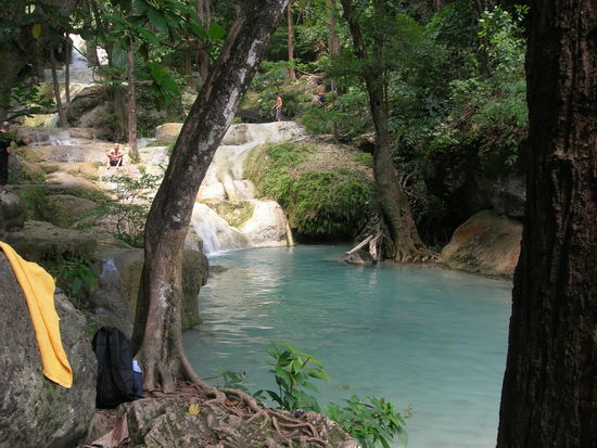 Am naechsten Tag (9.5) fuehrte uns ein gebuchter Ganztagesausflug zunaechst zu den Erawan Wasserfaellen.