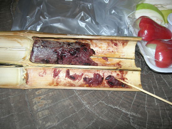 Durch unsere scheinbar sehr fragenden Blicke veranlasst, schenkte uns ein Thai eines seiner gekauften Bambusrohre.