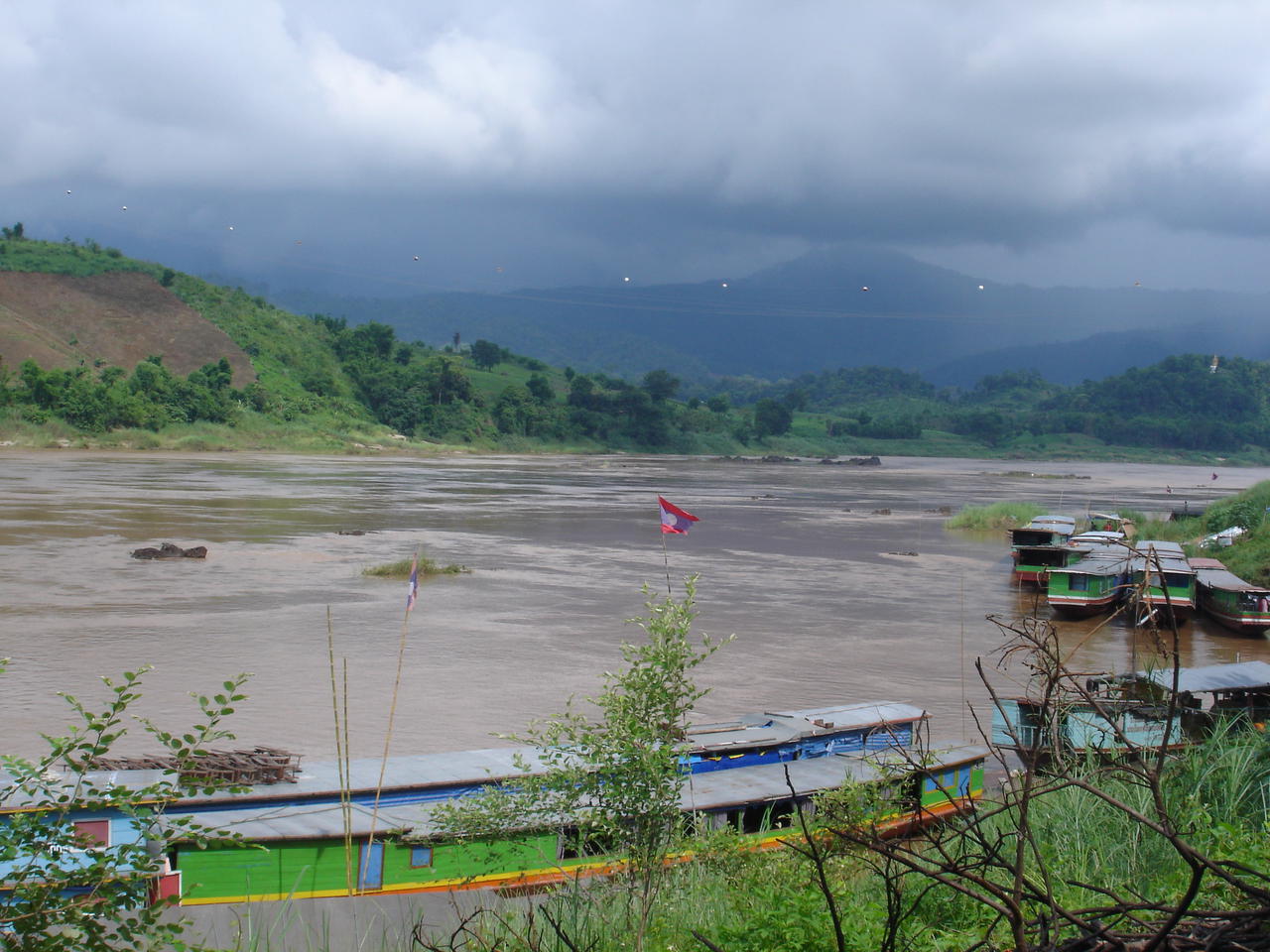 Das Ueberhostel laesst mich ja nicht los. Nachdem ich nochmal in meinem Reisefuehrer gelesen habe, dass das Fruehstueck dort fantastisch sein soll, starte ich einen zweiten Versuch. Weil alles sehr verlassen aussieht bin ich schon kurz vorm umdrehen, aber dann begruesst mich ein freundliches "Sawadee kaa". Breakfast??? Sie macht eine Ausnahme und oeffnet fuer mich frueher. Und jaaaaaaaaaaaaaa. Ich habe das beste Freuhstueck auf meiner bisherigen Reise. Selbstgebackenes Brot und ein geniales Omelette. Dazu eine fantastische Aussicht auf den Mekong und die andere Seite. Da ist Laos. Ja die eine Seite noch Thailand dann rueber mit dem Boot und schon ist man in einem anderen Land. Aber der Reihe nach. Nachdem ich dann auch noch den selbstgebackenen Muffin zum Take away bestellt habe geht es zurueck zum Hostel wo ich mich mit Amy und Raj treffe. Und dann geht es auch schon los. Zusammen mit der Backpacker-Reisegruppe ab in den Minivan und nach 3minuten Fahrt erreichen wir den Mekong. Hier wechseln wir aufs Boot und nach weiteren fuenf Minuten betreten wir Laotischen Boden.