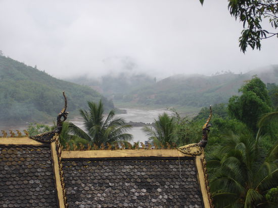 Hier heisst es dann, das wir nicht das gleiche Boot wie gestern nehmen muessen, da alle nach Luang Prabang fahren. Really??? Ja Vertrauen! Und wir haben Glueck. Keine Holzbaenke jedenfalls in den ersten Reihen, sondern sehr bequeme Sitze mit hohen Lehnen. Leider ist hier Liegen nicht moeglich. Aber egal. Den Tag verbringe ich dann genauso wie gestern. Relaxen, Lesen und Essen. Und ich muss sagen, nach der Woche Thailand hab ich diese zwei Tage Slow Boot mehr als gebraucht. Und der Name Slow Boot ist ein wenig truegerisch. Aufgrund der anfangenden Regenzeit hat der Mekong entsprechend viel Wasser, wodurch viel Stroemung vorhanden ist und wir entsprechend schnell unterwegs sind. Also mit dem Fast Boot moechte ich hier nicht unterwegs sein. Das ist wahrscheinlich alles andere als entspannend. Auch wenn das nur einen Tag dauert. Den zweiten Tag braucht man dann in Luang Prabang zum Nerven beruhigen.