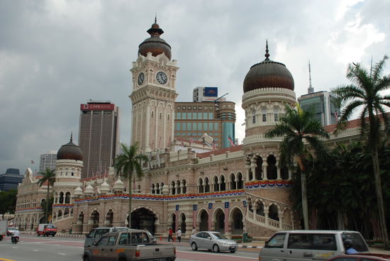 Durchgefroren (ich hasse Klimaanlagen) und muede (leider war kein Bett mehr frei, aber vorreservieren, nein das muss man nicht, ist ja nicht Hochseason, ne!!!) komme ich morgens gegen 9Uhr in Kuala Lumpur an. Man ist dann ein geiles Gefuehl wenn man von ausserhalb mit dem Zug einfaehrt und dann alles erblickt, was man sonst nur aus dem Fernsehen kennt. Als ich am Hauptbahnhof aussteige merke ich dann auch direkt, dass in KL alles etwas anders laeuft. Ich habe noch nie so viele disziplinierte wartende Menschen, brav aufgestellt in Reihen, gesehen. Und nirgends ist auch nur ein Stueckchen Dreck. Das traut sich hier auch keiner, bei den Strafen.
