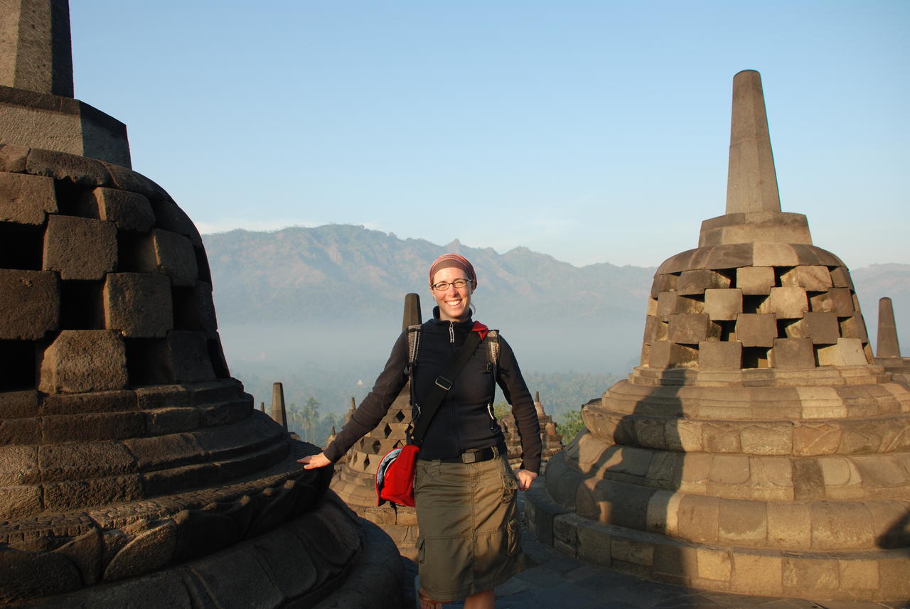 Da mein Handy leider nicht mehr funktioniert und da mein einziger Wecker, neben meinem ipod drin ist verpenne ich dann leider am naechsten morgen. Rau werde ich um 5Uhr von "Hello Miss, Borobudur, Borobudur, wake up." geweckt und bin total von der Rolle. Vor lauter Chaos faellt mir meine Brille runter und wie ich dann 7 Stunden spaeter feststelle bricht ein Glas. Was fuer ein Morgen. Da ich auch noch alles packen muss, weil ich das Zimmer wechseln muss gibt es noch mher Chaos. 10 Minuten spaeter sitze ich entschuldigend mit den anderen im Bus und los gehts.