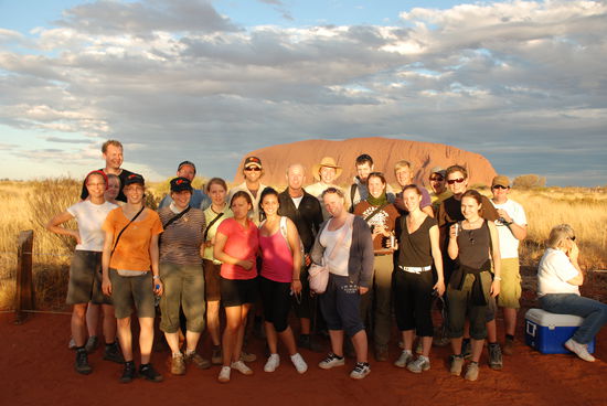Nach der Wanderung durch diese wunderschoene Landschaft haben wir noch ein wenig Zeit die Olga's zu geniessen und dann geht es zum Highlight des Tages: Sunset bei Uluru!!!!!!!!! Mit Snacks und Sekt. Das ist ein Backpackerleben Und der hat es dann auch echt in sich. Der Sunset ist nicht wie ich gedacht habe hinter Uluru sondern davor, so dass der Berg von vorne angestrahl wird. Wir kommen aus dem Fotorausch gar nicht mehr raus, da sich die Farben mit jeder Minute veraendern. Einmalig schoen und laut unserem Guide einer seiner Top Five Sunsets.