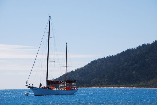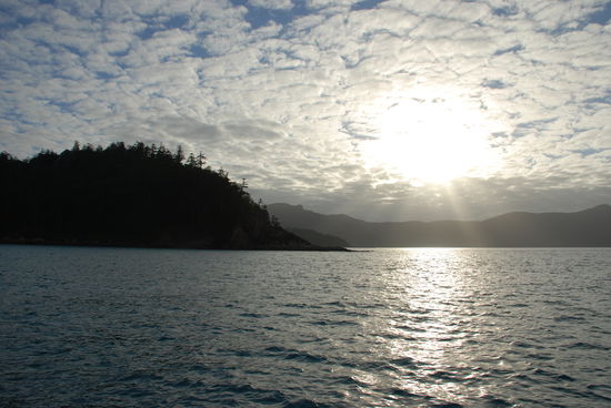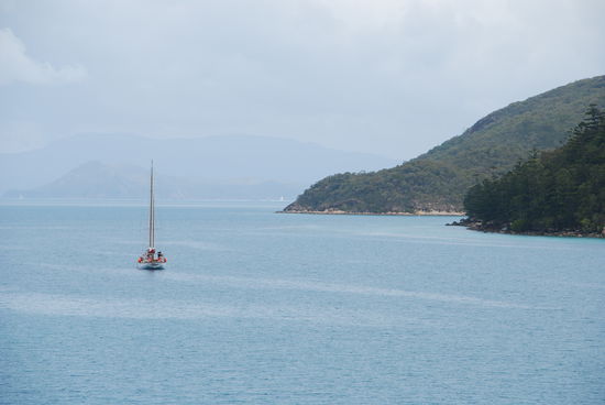 Leider ist es kurz darauf bewoelkt, aber das aendert nichts an dem schoenen Segelwind. Nur etwas waermer koennte es sein. Nach einem leckeren Lunch motoren wir zu Whithaven Beach, angeblich einer der schoensten Straende der Welt und da sieht man mal wieder wie unterschiedlich geschmaeker sein koennen. Klar ist der Sand aussergewoenlich fein, aber ich hab schon weit schoenere Straende gesehen. Wir haben Glueck dass die anderen Touris sich alle auf den Heimweg machen und die Sonnen sogar noch rauskommt, als wir den Strand entlang spazieren.