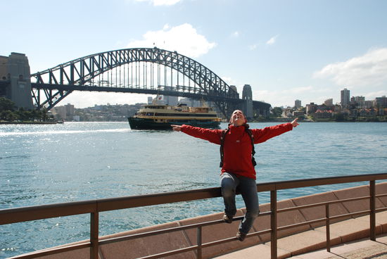 Ich kann es nicht glauben. Sydney. Ich bin tatsaechlich in Sydney Die Bilder erreichen zwar mein Gehirn aber irgendwie sind da zu viele Gefuehle. Als ich ueber die Bruecke fahr und die Oper sehe fange ich echt an zu heulen. Traenen des Gluecks... Wer traeumt nicht davon hier mal einzusegeln. Das waer der HAMMER. Ich glaub so viele Traenen kann Sydney gar nicht auffangen, dann steht die Oper unter Wasser.