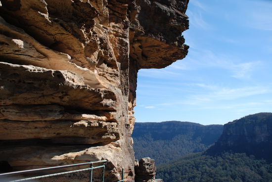 Mittwoch ist Blue Mountains Tag. So sitzen wir also bereits zur unchristlichen Zeit im Zug. Dany fragt uns schon ob wir hier Urlaub machen oder auf welcher Mission wir sind. Es gibt halt viel zu sehen! Allerdings war uns beiden nicht bewusst, dass es da draussen ausserhalb von Sydney, in den Bergen, wie der Name Mountains schon sagt, auch etwas kalter sein koennte. Ich kann nur sagen, es war ein gutes Training, fuer das was noch alles kommen wird. Wir bewegen uns also ein wenig mehr und ein wenig schneller, damit die Gliedmassen nicht absterben. Oder kuscheln ein wenig im Bus, der uns von einem Stop zum naechsten bringt.
