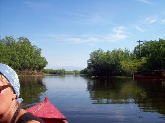 Danach ging mein Albtraum dann los,ich hab mir die Fuesse wund gekratzt und dachte echt,ich dreh durch,ich bin so gestochen worden,allein auf der linken Hand hab ich 8 Moskitostiche(ja,ich hab sie gezaehlt)Und im Sand sind Millionen von Sandfloehe,die einem die Fuesse zerbeissen,es war schrecklich,ich hab mich zwar vorher eingecremt,aber da ich ja manchmal im Wasser war,ist es abgespuelt worden.Ich hab dann beim Abendessen schnell gegessen und bin dann aufs Zimmer gegangen...allerdings brachte es nicht viel.Unsere Huetten waren eben Huetten mit Palmendaechern(hoert sich alles toll an,aber ist nachts ein Albtraum!),sodass die Moskitos problemlos reinkonnten und mich die ganze Nacht geaergert haben,ich sah am Morgen dementsprechend aus,ueberall rote Beulen und Stiche.Anna dagegen hat nicht eine einzige,ich weiss nicht wieso!Wir haben uns am Tag vorher entschieden,eine Bootstour zu machen,sodass wir um neun abgeholt werden sollten.Vorher haben wir,wieder mit Ausblick aufs Meer,einen Milchshake gegoennt....lecker...Ananas,Banane,Vanille,Kokos und Joghurt,so gross,dass wir dachten,der Bauch platzt,und es hat so satt gemacht,dass wir erst um 13 Uhr gegessen haben!Um 9 Uhr kam dann unser Bootsmann,der total nett war und auch ne klasse Tour gemacht hat.Es war total schoen,ueberall die Natur,die Stille,das Gruen...man schwieg und genoss einfach nur!Eine Stunde ging das Ganze,danach haben wir uns wieder ins Meer gestuerzt und nun muss ich leider (Mamilein,tut mir leid,aber ich muss es erzaehlen,ist schliesslich eben ein Ereignis!) sagen,dass ich fast ertrunken waere.Und das wirklich!!!!Ich bin mit Liane im Wasser gewesen,die wir dann auch getroffen haben, und haben uns unterhalten.Ich vergass zu sagen,dass die Wellen in Monterrico beruechtigt sind und teils bis zu 3 Meter hoch sind!Jedenfalls haben wir geredet und sind immer mit den Wellen geschwommen,sodass nichts passieren konnte.Ploetzlich kamen aber 2 so schnell hintereinander,dass wir kaum Luft holen konnten,und wir wurden mitgerissen,ich knallte mit dem Kopf unter Wasser auf den Boden und wurde so durchgeschleudert,dass ich nicht mehr wusste,wo oben und unten war,auch weil mein Kopf vom Aufprall so wehtat.Ich konnte nicht glauben,dass es mir passierte,da ich nie damit rechnete,dass Wellen wirklich so tueckisch sein koennen,wie gesagt wird!Ich kann zum Glueck lange Luft anhalten,aber geraet man erstmal in Panik nuetzt das auch nicht mehr viel,auch weil man unter Wasser nichts sieht.Ich war,so denke ich es mir(es war lange!),bestimmt 20 Sekunden unter Wasser,ich hab,wirklich,ohne Sch...,gedacht:Okay,dann stirbst du eben im Paradies,bis ich dann mit den Haenden fuehlen konnte,wo der Boden ist,und mich mit aller Kraft nach oben gestossen habe,ich war so erleichtert,schnappte gierig nach Luft und schaute,ob die naechste Welle schon kommt,und sah,dass Liane auch hochkam!Wir drueckten uns im Wasser und wollten nur noch raus!Anna hat es gesehen und musste fast weinen,aber zum Glueck ist alles nochmal gutgegangen!Ich war den Rest des Tages sehr nachdenklich,das Leben kann so schnell vorbei sein!Ich betrachte nun einiges mit anderen Augen,so sehr hat mich das Erlebnis gepraegt!