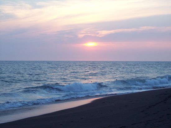 Samstagmorgen um 8 Uhr bin ich zuhause abgeholt worden und hatte mich drauf eingestellt,allein zu fahren(ohne,dass ich jemand kenne).10 Minuten spaeter haben wir Anna abgeholt,wir haben uns gefreut,dass wir zusammen zu Liane fahren.Nach ca.2 Stunden sind wir dann in Monterrico angekommen,ich kam mir vor wie einem Werbespot fuer die Karibik,ein Traum!Ueberall bunte Haeuser,Palmen,Kuehe,Schweine und Huehner die vor der Haustuer grasen.Dann die netten Menschen,die einem sehr freundlich begegnen und das Beste aus ihrem Leben machen.Sie haben echt nicht viel,aber strahlen eine Lebensfreude aus,von der wir Deutschen uns echt eine Scheibe abschneiden koennenUeberall waren Baeume mit Kokosnuessen,Apfelsinen und Bananen...so schoen!Als wir ausstiegen traf mich die Hitze enorm,ich war innerhalb von Sekunden klitschenass und freute mich umso mehr auf das Meer!Was 2 Stunden Autofahrt ausmachen koennen?!In Antigua ist es zwar warm,aber meist angenehm,hier jedoch war es 10Grad waermer!!!Ich wusste schon vorher,wo ich schlafen wollte und bin dann mit Anna zu Johnny's gegangen.Sie wollte eigentlich woanders schlafen,aber da ich kein Einzelzimmer kriegen konnte,haben wir uns spontan eins geteilt.Innerhalb von 5 Minuten haben wir uns umgezogen und freuten uns auf das Meer.Ich war so gluecklich,endlich im Wasser sein zu koennen,das Wasser war badewannenwarm und die Sonne scheinte,es haette nicht schoener sein koennen