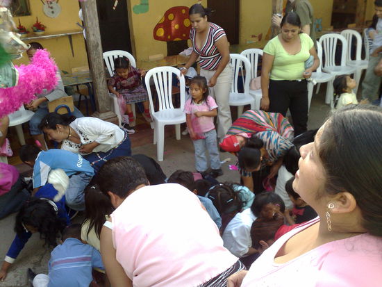 Doch erstmal zum Anfang:Mittags sassen Amanda und ich draussen und haben uns schoen gesonnt,bis wir ein tiefes "Hola" hoerten...Oscar!Normalerweise ass er nicht mit uns zu Mittag,aber da er die letzten 3 Abende arbeiten musste,wollte er zumindest mal "Hallo" sagen.Ich hab mich ganz doll gefreut,bis Mayra mich anschaute und mir zu verstehen gab,dass ich ihm noch was sagen muss.Ich hab es total vergessen,dass er noch gar nichts von meiner Abreise weiss.Ich nahm Oscar an die Hand und zeigte ihm auf unserem Kalender,dass ich am 16.12. heimfliegen wuerde.Er schuettelte den Kopf und sagte:22.12.Ich erklaerte ihm dann mein Problem,er liess mich stehen und ging die Treppe runter.Ich schaute Mayra fragend an und sie sagte:Ich hab es dir doch gesagt!Zum Glueck kam er 5 Minuten spaeter wieder hoch und war sichtlich traurig.Es tat mir weh ihn so zu sehen,ich ging zu ihm hin und umarmte ihn.Er fragte dann ganz traurig:22.12?Ich verneinte und hatte Traenen in den Augen.Da sagte Mayra dann,sie wuerde meinen Schluessel nehmen und mich in der Nacht zum Abflug einsperren,damit ich hierbeleiben wuerde!Ich musste lachen und war froh,dass Mayra mich vom Weinen abgehalten hat,denn heute wuerde ich genug weinen!Wir haben dann noch Memory gespielt,bis ich kurz nach eins zum Kindergarten musste.Hab dann Sabine im Bus getroffen,sodass wir dann zusammen fahren und schnacken konntenIn Jocotenango angekommen war es sehr komisch,es waren noch Kinder da und diese Stille!!!!Es war ein gemischtes Gefuehl,auf der einen Seite die Ruhe vorm Sturm,aber andererseits war es wie auf einer Beerdigung,auch weil der Kindergarten sehr ordentlich und sauber war!Sabine und haben dann angefangen die Tische aufzustellen,bis Salome mit den 5 Torten und 35 Geschenken kam.Dann kamen auch so langsam die ersten Kinder,die alle rausgeputzt und frisch gestriegelt warenHaben dann auch die Eltern kennengelernt und teils auch die Geschwister und Grosseltern,war schoen!Dann ging es los,in der Mitte vom Hof wurde ein grosses "Tier" aufgehaengt,der mit Bonbons und Spielzeug gefuellt war.Die Kinder sollten dann reihum mit verbundenen Augen drauf einschlagen(mit einem Stock).Es war ein toller Spass,die Kinder feuerten sich gegenseitig an und man sah ueberall die strahlenden Gesichter,es hat uns sehr gluecklich gemacht,dass wir es richtig gemacht hatten.Wir hatten naemlich alles organisiert und zum groessten Teil auch bezahlt,da die Organisation in letzter Minute Probleme hatte-wers glaubt!Als das "Tier" dann endlich kaputt ging,stuerzten sich alle Kinder auf den Boden um die Leckereien abzustauben.Wir Grossen haben dann auch etwas "geklaut"Danach gab es Essen und Kuchen,hmm lecker!Wir waren echt satt,haben allerdings nicht gewusst,dass es soviel werden wuerde,sodass wir Drei noch zum Abendbrot musstenZum Schluss gab es dann Geschenke:Jedes Maedchen hat eine Barbie mit einem Foto von sich fuer die Eltern bekommen(es ist Luxus ein Foto zu haben!),die Jungs haben ein grosses Auto bekommen,sie waren so gluecklich!Tja und dann kam der Abschied:Salome und ich sagten,dass es unser letzter Tag waere,sodass die Kinder dann auf uns zuliefen,uns umarmten und anfingen zu weinen.Es war echt schlimm,denn die Betreuer fingen dann auch an zu weinen,ueberall hoerte man nur Schluchzen,furchtbar!Ich sah echt schlimm aus,meine Schminke war total verlaufen und Salome und ich schauten uns an und mussten dann wieder lachen,wir sahen wie Figuren aus der Gruselshow aus!Haben dann zum Abschied ein Weihnachtskorb mit einer Kerze bekommen,das die Kinder gebastelt haben,als wir nachmittags zu Hause waren!Mir werden die Kinder sehr fehlen,es war zwar sehr anstrengend,aber auch total schoen,ich hab grossen Spass gehabt,und jedes Kind ist auf seine Weise einzigartig.Schnuef!Auf dem Rueckweg nach Hause musste ich mich dann von Salome verabschieden,wir werden im Kontakt bleiben,da bin ich mir sicher.Es sind wieder Traenen geflossen....Zuhause angekommen sassen Amanda und die Familie schon am Tisch und schauten mich ganz komisch an,ich sah ja total verheult aus!Oscar hat mich dann gedrueckt und mich gebeten naechste Woche nicht zu weinen-Scherzkeks!Dann haben sie sich noch bei mir bedankt,denn da heute Nikolaus ist,hatte ich fuer die Familie und Amanda einen Schuh mit Suessigkeiten gebastelt,sie haben sich total gefreut!Ich bekomme erst was,wenn ich fliege,da es was Groesseres sein soll