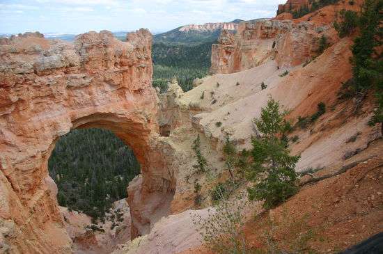 Der Sunset Point und Sunrise Point sind durch den Rim Trail miteinander verbunden sodass wir schnell wieder zurück am Auto waren. Wir sind dann noch an Ende zum Rainbow Point gefahren der auf 9117 Fuß Höhe liegt mit herrlicher Aussicht. Von dort aus haben wir dann die einzelnen View Points rückwärts Richtung Visitor Center wieder abgefahren. Das Wetter im Bryce Canyon wechselte übrigens wirklich alle paar Minuten im Schnitt hatten wir etwa 8°C, in der Sonne bei Windstille lief einem der Schweiß runter, sobald Windböen aufkamen wurde es wieder eisig. Das Wetter hat uns aber nicht wirklich gestört, die Eindrücke waren so überwältigend, das Wetter wirklich nur nebensächlich war. Der Bryce Canyon ist ein absolutes Muss und hat uns an jeder neuen Ecke sprachlos und kopfschüttelnd verharren lassen. Wir hatten manchmal das Gefühl es handelt sich hier um eine Kulisse die morgens aufgeblasen wird zum angucken und durchwandern und nachts wird die Luft raus gelassen, alles gereinigt um es am nächsten Tag wieder aufzublasen. Wir waren schon schwer beindruckt und hatten das Gefühl, das man dies nicht toppen kann. Als wir aber zum Schluss nochmal im Visitor Center einen Abstecher ins Museum gemacht haben, sahen wir dort ein riesiges Relief Modell vom ganzen Areal mit Zion Canyon, Bryce Canyon usw. und auch dem Grand Canyon. Letzterer hat Laut Modell seinen Namen wirklich verdient, liegt aber noch vor uns. Wenn uns der Bryce Canyon schon sprachlos zurückgelassen hat dann möchte ich nicht wissen was am Grand Canyon passiert. Vermutlich wird dies einfach nur eine leere Seite im Bericht weil uns die Worte fehlen. Übernachtet haben wir übrigens in Tropic im Bryce Canyon Inn, mit angeschlossenen Pizza Restaurant, alles direkt neben der Post Office. Dort haben wir noch unsere Briefmarkenvorräte aufgestockt für die Grüße nach Hause. Postkartenporto liegt mittlerweile bei 94ct.