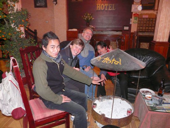 Ker wollte uns schon am Ankunftstag treffen, hatte sich extra die ganzen Tage Urlaub genommen. Leider erkannte sie uns in unserer Vermummung nicht, wie wir in der Hotelhalle um den Holzkohlengrill saßen.