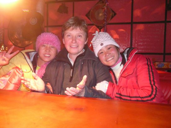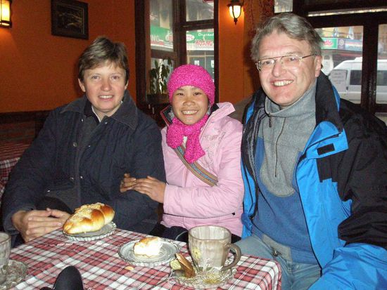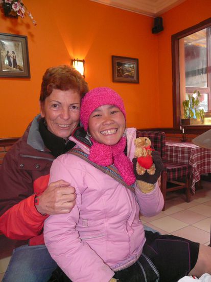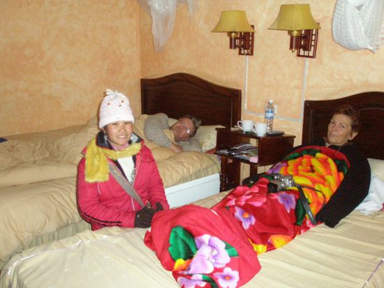Nach dem ersten Trekking mit Elfi kam Ker Renate und mich am Zimmer besuchen. Schön, einen Krankenbesuch zu bekommen, daheim geht es mir nie so gut. Renate interessierte sich für Kers Tracht. Nach und nach musste das arme Mädchen sich auswickeln und vorführen, welche Schichten sie noch darunter hatte. Schaute sie in voller Montur relativ stämmig aus, wurde Ker mit jeder abgelegten Schicht immer dünner und dünner, bis ich meinte stopp, hört auf! Ich hatte Angst, das Mädchen würde sonst mit der letzten Schicht Kleidung verschwunden sein.
