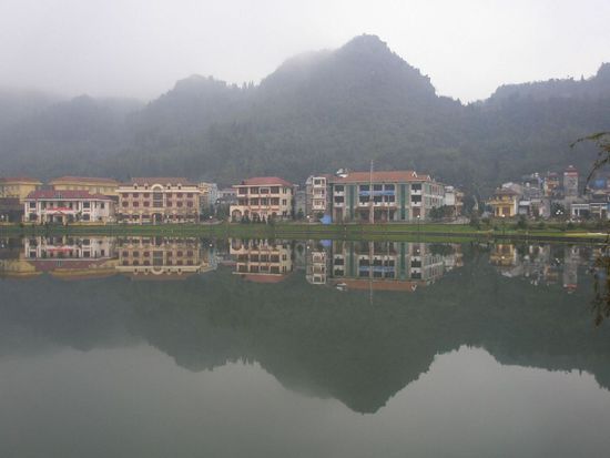Kurz nach Mittag wurde es immer finsterer, je höher wir auf den Berg kamen. Auf dem letzten Pass vor Sapa dann zuckten unsere vietnamesischen Mitreisenden völlig aus. Sie weckten einander auf und begannen wie kleine Kinder zu jubeln und jauchzen. Schon vorher hatte ich den Eindruck, als wäre draußen eine Schnee- und Eislandschaft, aber das war so unmerklich, dass es die unerfahrenen Vietnamesen nicht erkannten. Oben auf dem Pass allerdings waren die Bäume und Sträucher mehrere Zentimeter dick mit Eis bedeckt. Es war ein richtiger Besichtigungstourismus entstanden, die Leute waren mit Mopeds auf den Pass gefahren, um das Eis zu bestaunen. Um Hände und Füße hatten sie Plastiksackerln gewickelt und sie hüpften verzückt in der Eislandschaft herum. Wer dachte da schon an die erfrorenen Reispflänzchen, die ich im vietnamesischen Fernsehen gesehen hatte? Oder an die erfrorenen Wasserbüffel, von denen uns Ker später erzählte!