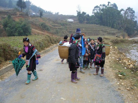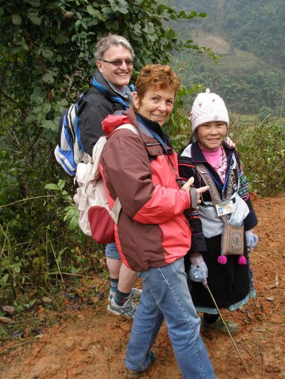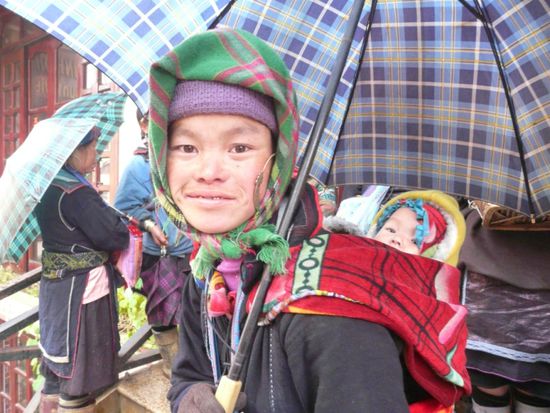 Wie vereinbart stand heute um acht Uhr in der Früh der Jeep mit Fahrer bereit. Es war nass und es war kalt. Schade, dass Little Chi ausgerechnet erst heute Früh nach Sapa herauf gekommen war, um mir Hello zu sagen. Nach den Tagen mit Fieber und Durchfall schaute ich offenbar wie der Tod persönlich aus, Little Chi war ziemlich wortkarg und fremdelte. Nur sehr zögerlich nahm sie meine Geschenke entgegen.