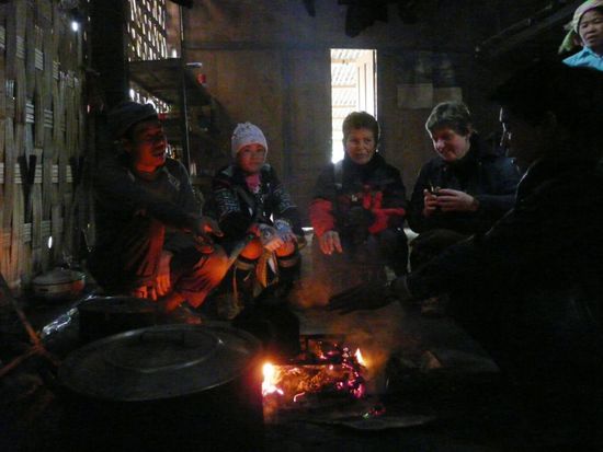 In einem der Homestay-Häuser, das ich letztes Jahr schon besichtigt hatte, setzten wir uns in der Rauchküche am Feuer zusammen und warteten den Regenschauer ab, der uns als Nachzügler heimsuchte.