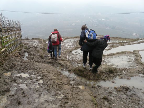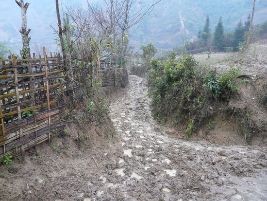 Und dann standen wir am Weg zu den heißen Quellen. Absolut unpassierbar, selbst für H'Mong-Guides. Wir wären bis zu den Waden im Lehm versunken.