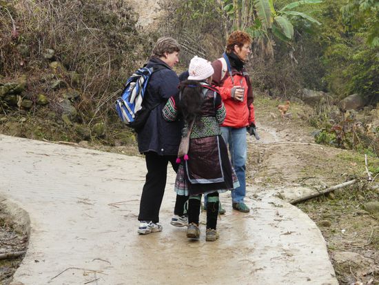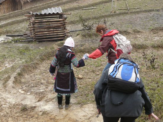 Den Weg hinunter schaffen meine Damen nur mit tatkräftiger Hilfe der kleinen, aber zähen Frauen.