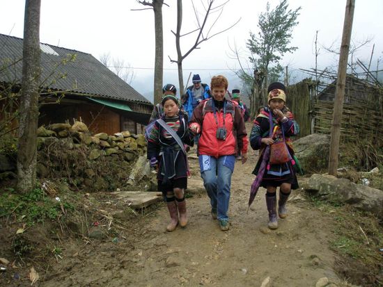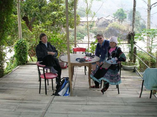 Mit dem Jeep ging es weiter nach Ta Van. Es gab wieder einige Gästehäuser mehr gegenüber dem Vorjahr, ansonsten wie bekannt. Wir waren sofort von ganzen Trauben von Frauen und Mädchen umringt, die uns unverhohlen neugierig ausfragten. Hello! What's your name? Where are you from? How old are you? Do you have children? Buy for me! Hello, how are you? Where you from? Please buy from me. Buy for me! How old are you? What's your name? Where you go now? You children? What's your name?.... Hundert mal dieselben Fragen, mal besseres Englisch, mal schlechteres.