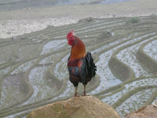 Wo ist die Toilette, wollte Renate wissen. Draußen, meinte Ker. Renate blickte vor die Tür, wo gerade der Hund ein Ferkel verjagte, das ins Haus wollte. Ein so genannter Schweinehund also. Wo, fragte Renate. "Where you want" Renate blickte auf die Reisterrassen. Kein Baum weit und breit, kein Strauch, und von allen Bauernhäusern ringsum blickten die Leute neugierig her. Die arme Renate musste sich mit ihrer Blase arrangieren.