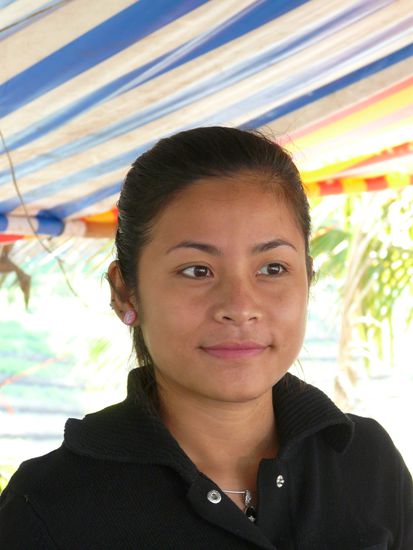 Vat Pa Houak, That Chomsi, Vat Tham Phousi, und dann hinunter zum Vat Pa Ke, wo die Novizenschule gerade aus hatte und wir uns unter die Jungmönchsmeute mischten. An der Uferpromenade des Nam Khan bediente uns dann die schönste aller Laotinnen. Dass sie mein Fotomodell wurde, verwirrte sie so sehr, dass sie nach meinem Bier vergaß, die Fruchtcocktails für Elfi und Renate zu mixen. Daher konnte ich die Hübsche länger anschauen, und ICH hatte ja mein Bier - war also eindeutig MEIN Tag heute...