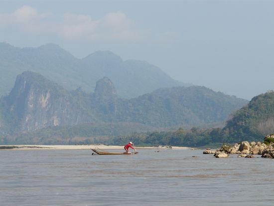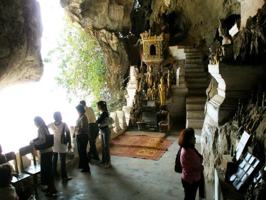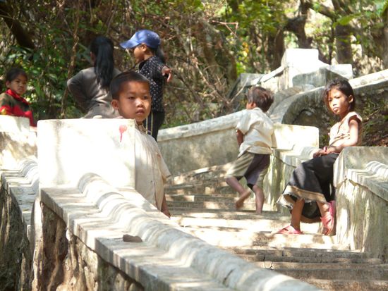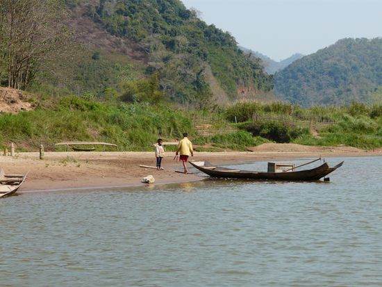Dieser Abschnitt des Mekong ist wirklich nur mehr schwach befahren, trotz der Aus-flugsboote, die von Luang Prabang aus die Pak Ou-Höhlen ansteuern. Wir hatten Glück und waren das einzige Boot an diesem Morgen, konnten also die Höhlen in Ruhe besichtigen.