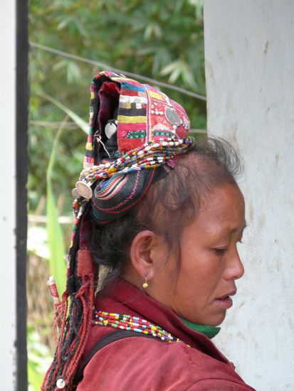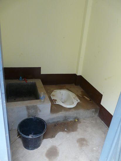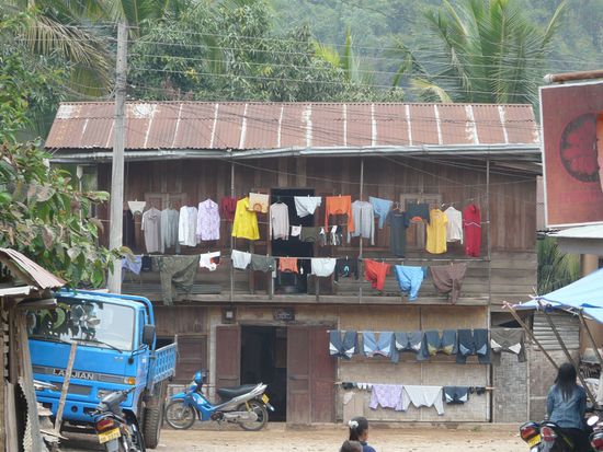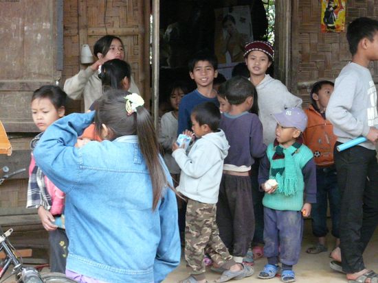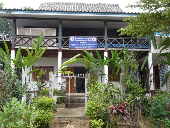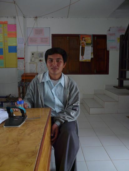 Eine Schwester gibt uns gleich einige Formulare zum Ausfüllen. Nein, wir sind nicht krank, wir wollen nur die Station besichtigen. Offensichtlich versteht sie uns nicht, wir müssen uns hinsetzen und Tee trinken, während sie den Arzt holt. Mit ein wenig Englisch und noch weniger Französisch versuchen wir einige Informationen einzuholen. Laotisches otes Kreuz mit Unterstützung durchs Internationale Rote Kreuz. Einen Arzt gibt es hier und einige Schwestern. Ob es auch Krankenbetten hier gibt. Er versteht die Frage nicht, aber es sieht so aus, als wären im hinteren Bereich einige Krankenzimmer. Für die Behandlung hier, muss eine Kleinigkeit bezahlt werden, für Leute mit Einkommen eine Bagatelle, für andere wahrscheinlich unbezahlbar. Viel mehr Information können wir dem guten Mann nicht entlocken, wir erlösen ihn von unserer Anwesenheit, um weiter auf den Berg zu marschieren.