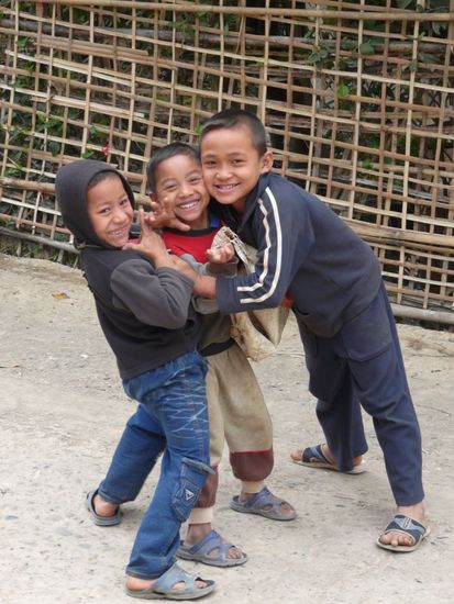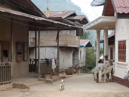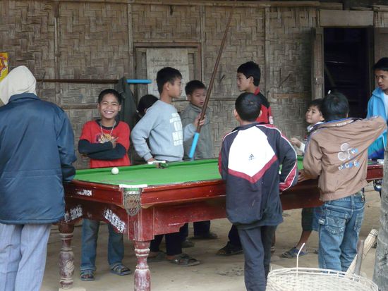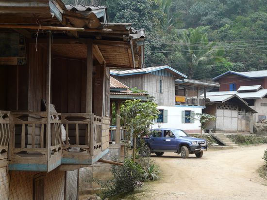 Wir marschieren also zum laotischen Grenzhaus. Hier lagert eine gemischte Gruppe, zwei Deutsche, drei Englischsprachige. Sie sind Vormittag von Dien Bien Phu herauf gekommen und wollen nach Muang Khoua, aber es findet sich kein Transportmittel. Sic! Sie frieren fürchterlich und wissen nicht, wie sie die Nacht überstehen sollen. Wie weit es zum nächsten Dorf ist. Naja, zu Fuß nicht zu schaffen. Während wir darauf warten, dass vielleicht doch mal ein laotischer Grenzbeamter vorbeischaut, tauschen wir mit den Deutschen mal einen Teil unserer Kip gegen deren restliche Dong. Unser Busfahrer kommt und fragt, wo sie hin wollen. Auf der Rückfahrt nimmt er sie mit, schlägt er vor. 250 Dollar. Was wir gezahlt haben, fragen die Deutschen. Wir haben von 200 auf 150 herunter gehandelt. 150 seien sie bereit, meinen sie zum Chauffeur, ist ja nur die halbe Strecke. Er bleibt hart. 250. Maximal 200, sonst bleiben sie da, meinen die Leute von Gruppe nun. 250, sonst kommt er nicht. Schön, er sieht die Notlage der Gruppe. Ich überschlage mal kurz. Es ist halb fünf, und wir sind noch nicht mal über die Grenze. Also sind wir nicht vor sieben in Dien Bien Phu, der Bus also zwischen neun und zehn wieder auf der Grenze heroben. Das heißt, die guten Leute sind nicht vor Mitternacht in Muang Khoua. Dort ist ab halb zehn stockfinster, weil Strom aus, und ab da schlafen alle. Wo wollen die übernachten? Ich behalte diese Frage für mich. Um 20 Dollar pro Kopf findet der Halsabschneider mit dem Bus sicher auch eine Lösung. Ich sehe ihn vor meinem geistigen Auge schon, wie er nächstes Jahr seinen klapprigen Bus in Pension schickt und mit einem Porsche Cayenne Touristen ausplündert. Die Gruppe resigniert und gibt sich mit 250 einverstanden.