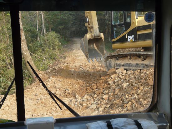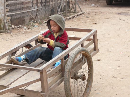 Wo es geht, fahren wir Vollgas, vor allem durch die Dörfer, weil da die Straßen meist in et-was besseren Zustand sind. Ein abgestürzter Lastwagen und eine Baustelle, bei der der Baggerfahrer gerade so viel Straße neu schafft, dass wir mir mit einem Zentimeter Abstand zum Abgrund vorbei können, sind unserer Laune nur sehr mäßig zuträglich.