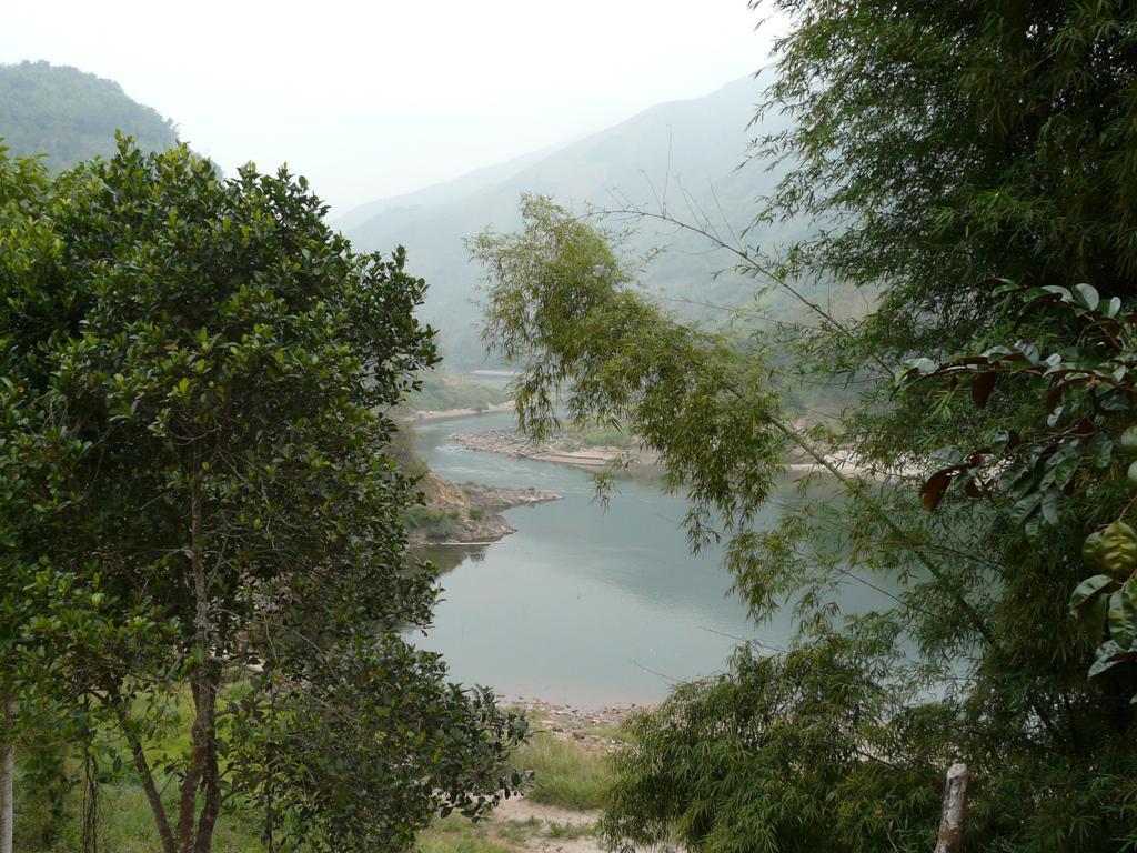 Hier am Ufer wird um diese frühe Morgenstunde nicht einmal Geschäftigkeit vorgetäuscht. Sogar der Fährmann schläft noch. Sehr verdächtig. In einer halben Stunde soll am anderen Ufer der Bus nach Dien Bien Phu abfahren. Und noch kein Fährmann zu sehen. Um dreiviertel sechs aufgestanden, noch im Finsteren über die Leitern des Nam Ou Guesthouse hinuntergeklettert. Haben unsere Rucksäcke hinunter geschafft, die immer noch mit Geschenken voll sind. Werden diese Rucksäcke nie leer? Ratlos stehen wir hier in Muang Khoua am Fluss. Zimmer aufgegeben, Weiterfahrt ungewiss, aber noch alle Puffertage vor uns. Kalt, gesundheitlich angeschlagen, was tun? Ein mittelalterlicher Mann spricht uns auf Englisch an. Gutes Englisch, schon lange nicht mehr gehört. Wo wir hinwollen. Dien Bien Phu? Da fährt heute nichts. Tetfest. Das war vor einer Woche. Trotzdem. Tetfest, keine Chance! Ich habe die böse Vermutung, er will uns etwas aufschwatzen. Aber er hat keine Lösung parat. Sorry. Er ist Arzt. Hals, Nasen Ohren am Krankenhaus von Luang Prabang. Er pendelt jedes Wochenende mit dem Bus. Welcher Tag ist heute? Sonntag, richtig, also ist er hier und nicht in Luang Prabang. Halber Tag mit dem Bus, Umsteigen in Udomxai. Ohne uns einen Vorschlag machen zu können, trollt sich der gute Mann von dannen. Einer Frau stehen wir im Weg. Einige Meter unter uns geht sie ich den Fluss. Weil wir flussabwärts blicken, watet sie an uns vorbei fluss-aufwärts, wo sie sich ins Wasser hockt. Nicht einmal in Ruhe aufs Klo gehen lassen einen diese Touristen. Arg.