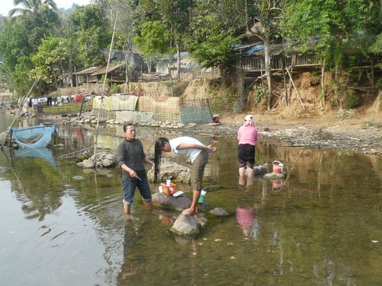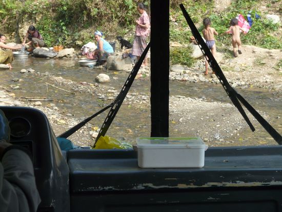 Wenn wir es wagen, trotzdem aus dem Fenster zu blicken, sehen wir, wie die Frauen sich, die Wäsche und das Geschirr waschen, Haare schneiden, Kinder baden, am und im Fluss halt das gesamte Leben, das sich in unseren Breiten in Küche, Waschküche und Badezimmer abspielt.