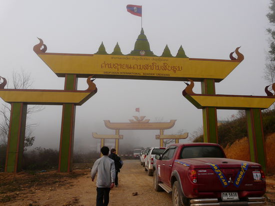 An der vietnamesischen Grenze heißt es aussteigen. Es ist nebelig und bitterkalt hier auf dem Pass, hat sicher kaum über null Grad.