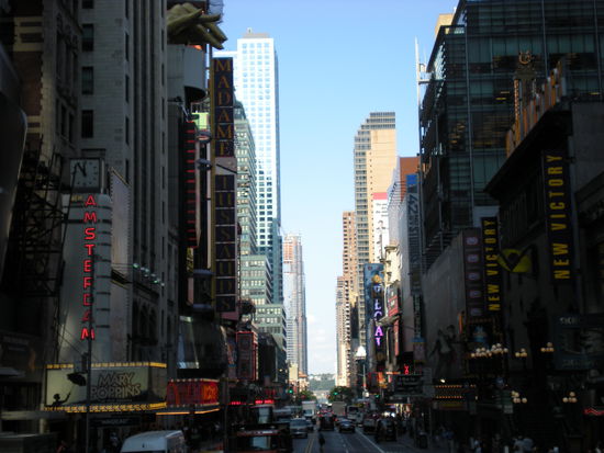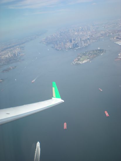 Am Mittwoch ging es für mich früh an den Flughafen, Richtung New York City. Hatte noch das Riesenglück, einmal direkt über Manhattan und Brooklyn zu kreisen... konnte mir also einen Helikopterflug schon mal sparen. Der Shuttle vom Flughafen brachte mich nach Grandcentral und wie ich es auf der Karte gesehen hatte, war es von da gar nicht weit zum Times square ... wollte ich mir also direkt mal anschauen und hab mich vollgepackt bis obenhin auf den Weg gemacht. Bin auch angekommen ... aber die Dimensionen in NY sind schon anders und so zog es sich ganz schoen.