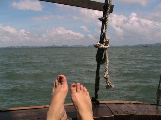 4 Stunden Zeit auf einer einsamen Dschunke im südchinesischen Meer. Grandiose Landschaften aus Kalksteininseln ziehen vorbei und ich genieße einfach nur diesen herrlichen Tag !